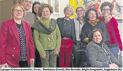 Il gruppo di donne promotrici. Da sin.: Maddalena Ermotti, Rita Bertoldo, Brigita Songailaité, Angjellushe Stafa, Patrizia Cattaneo, Corinne Zaugg, Chiara Valsangiacomo, Emma Gabriele, Gracemarie Bricalli.